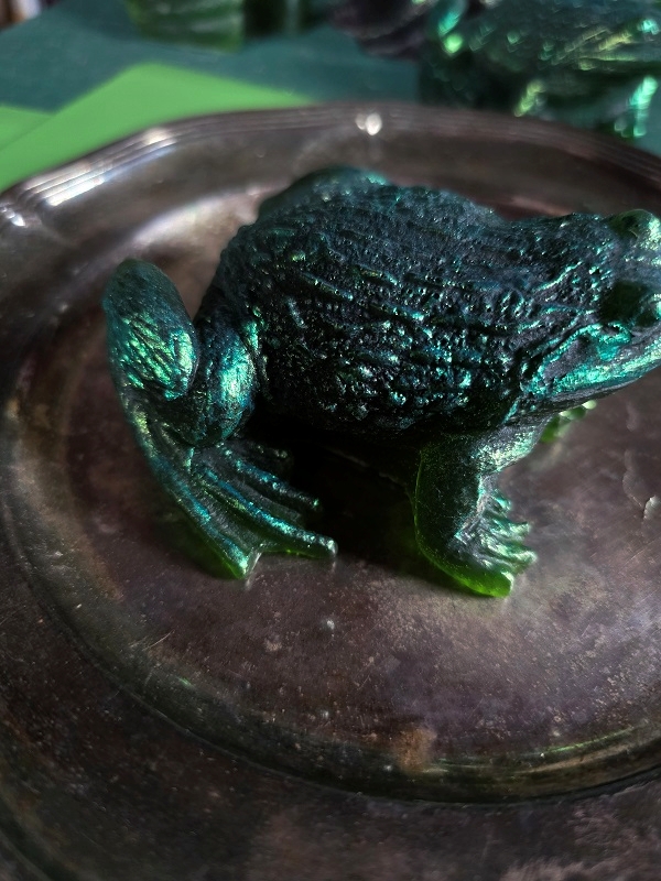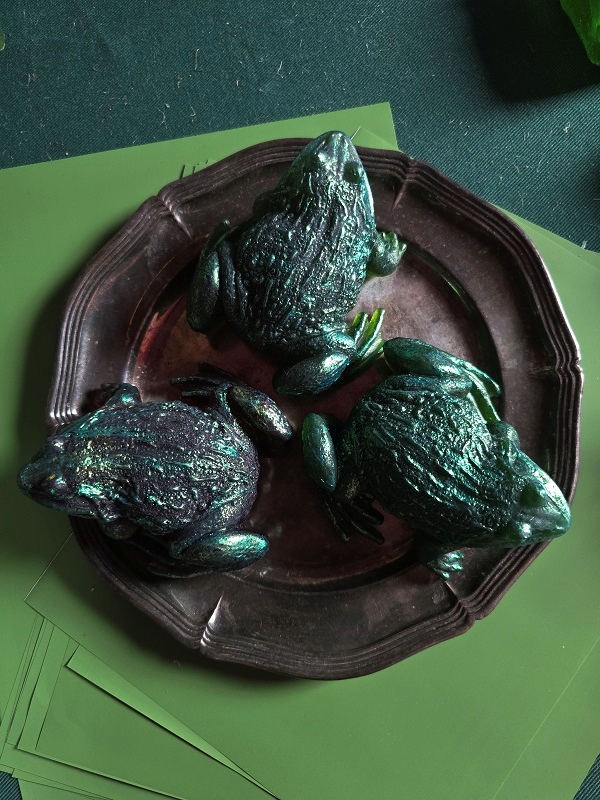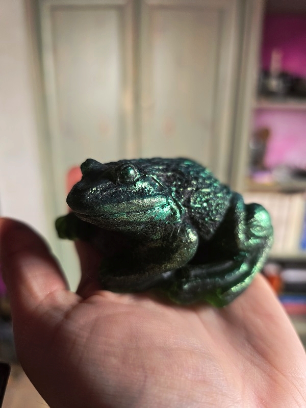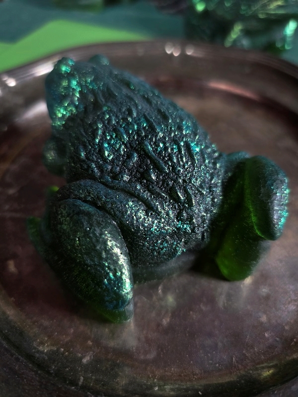 Malowanie na zewnętrznej stronie to farby do mydeł i świec od Cadence. Można je zmyć pod wodą, ale może to uszkodzić samą ropuchę, jeśli chcesz zamówić taką bez malowania, zamów żabę i dopisz w uwagach taką notatkę.