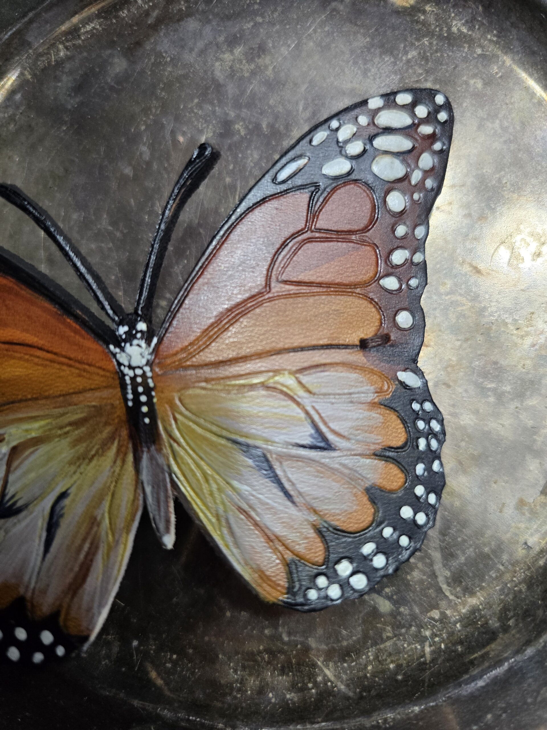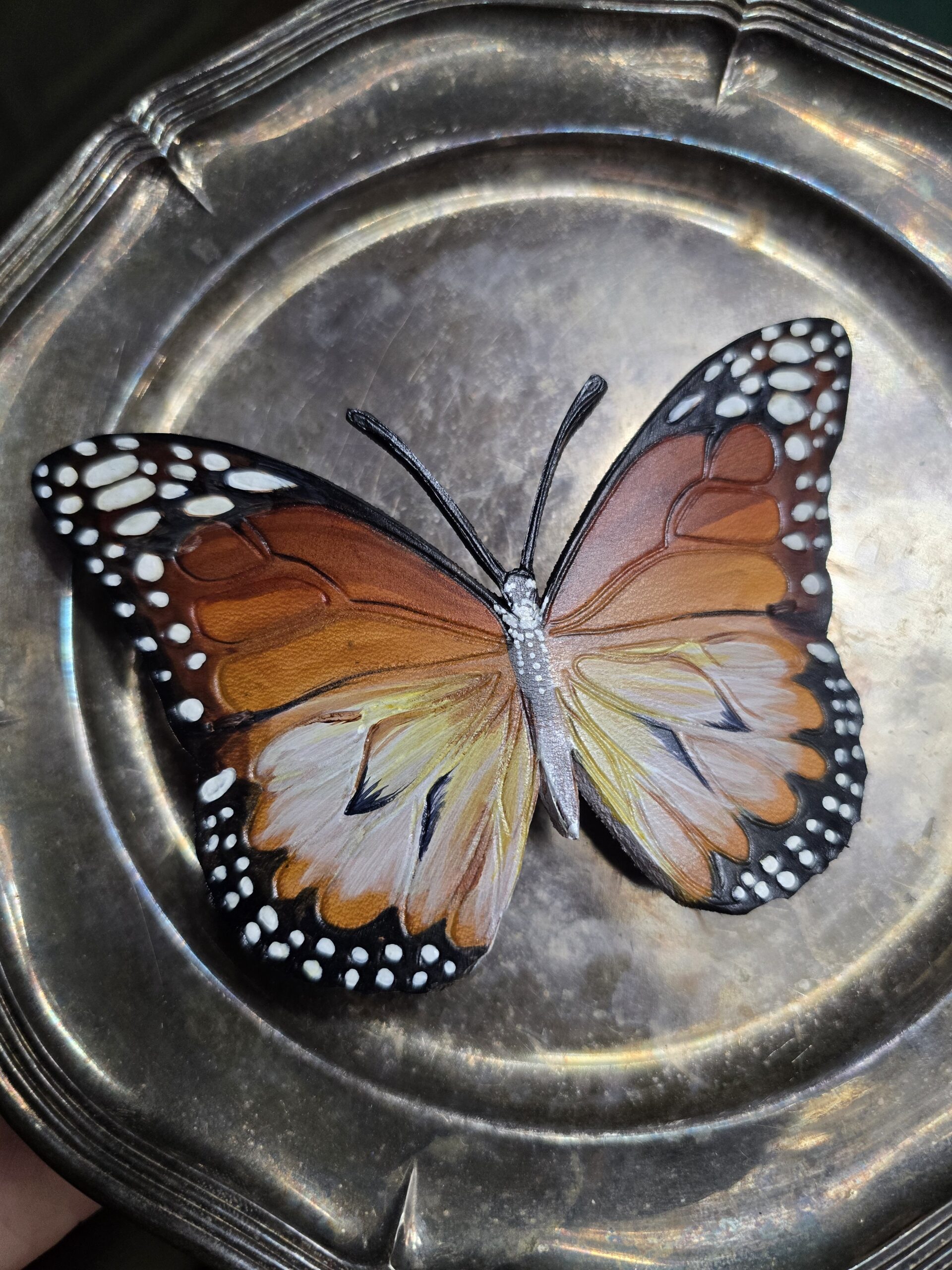 W pełni wykonana ręcznie i malowana naturalnymi barwnikami. Jest zabezpieczona odpowiednim lakierem dzięki któremu kolory nie wyblakną ani nie spiorą się, chociaż nie poleca się zamaczania tego rodzaju skórzanych wyrobów, ale to naprawdę musiałyby się taplać długo w głębokiej wodzie, żeby coś im się stało.